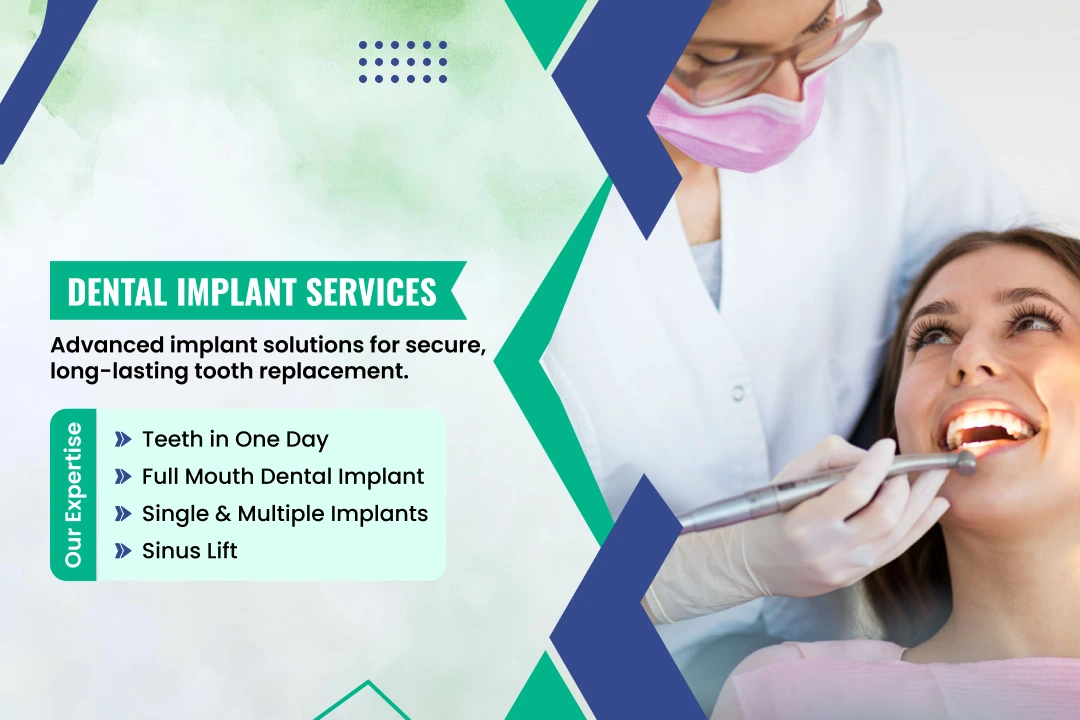 Replace one or multiple missing teeth with durable implants ensuring natural look proper function improved chewing ability and long term reliability.